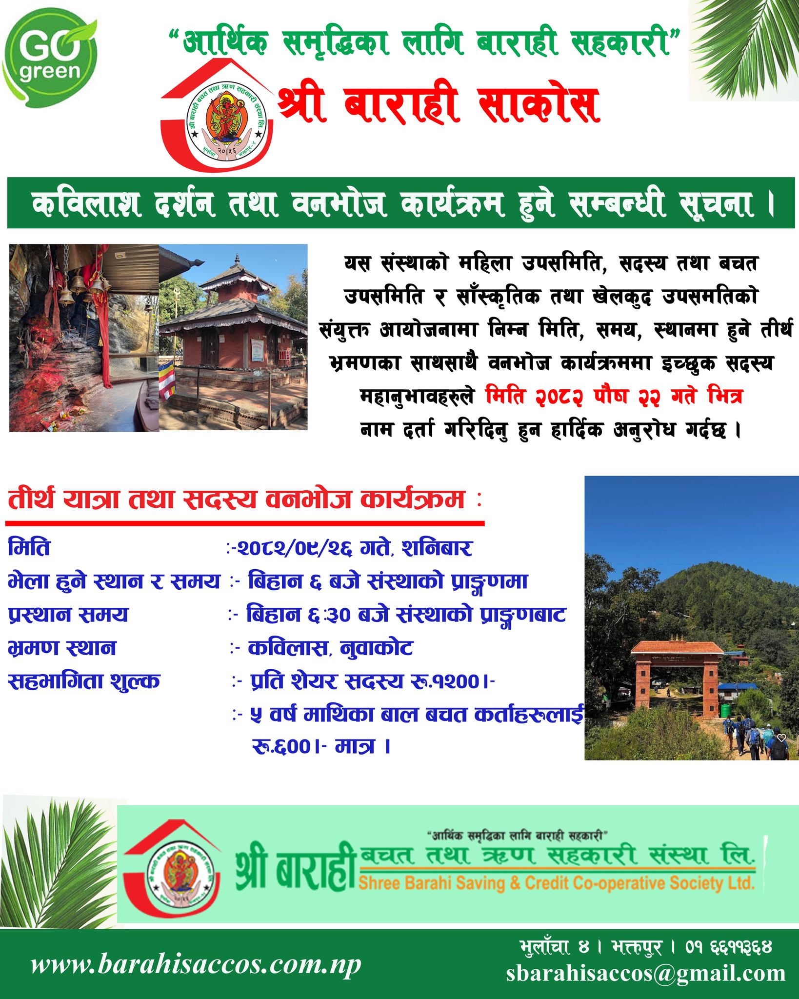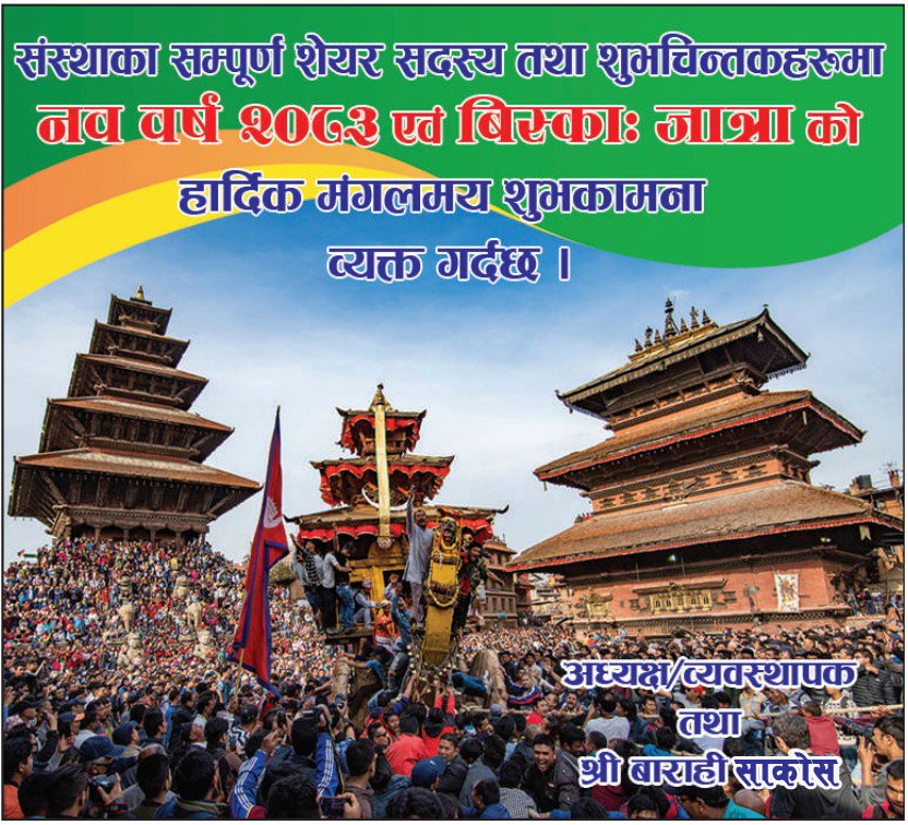 यस श्री बाराही बचत तथा ऋण सहकारी संस्थाको २५औं वार्षिक साधारण सभा तथा नवौं अधिवेशन २०८१।०६।१२ गते सम्पन्न भयो । उक्त गरिमामय सभाबाट मेरो नेतृत्वमा ११ सदस्य संचालक समिति निर्विरोध निर्वाचित गराउनु भएकोमा संस्थाका सम्पुर्ण सदस्यज्यूहरुलाई धन्यवाद व्यक्त गर्दछु । संस्थाको दिगो विकास तथा सदस्य समृद्धिका लागि संस्थामा नियमित वित्तीय कारोबार तथा सहभागिता जनाउनु हुने