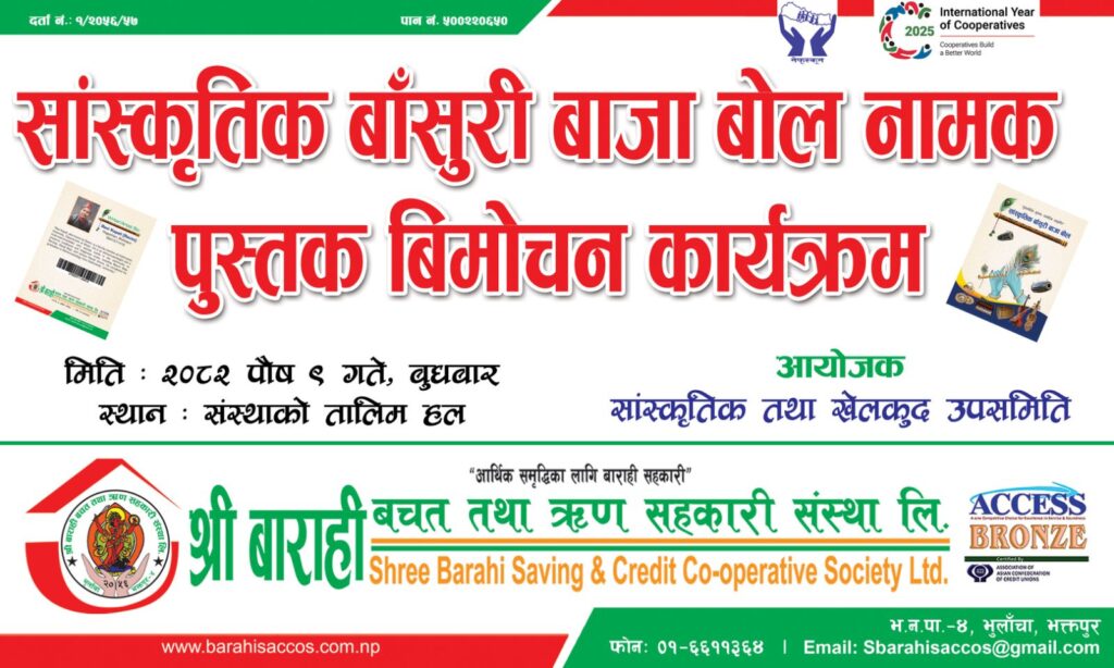 - श्री बाराही साकोसमा रभिम कपाली द्धारा लिखित सांस्कृतिक बाँसुरी बाजा बोल पुस्तक विमोचन